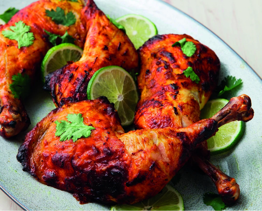 Grillade kycklingklubbor marinerad med tandoorikryddor